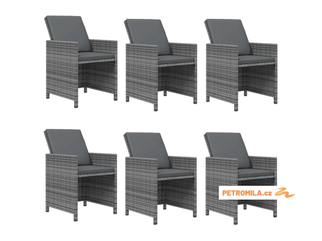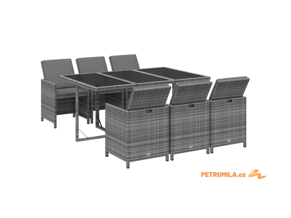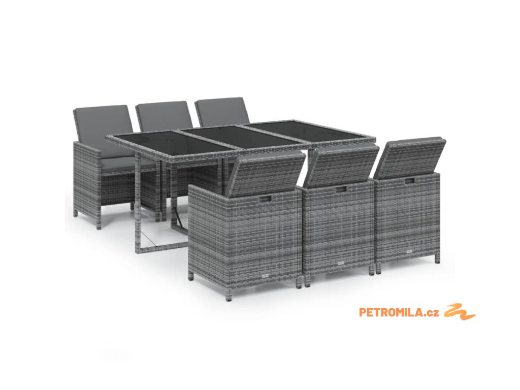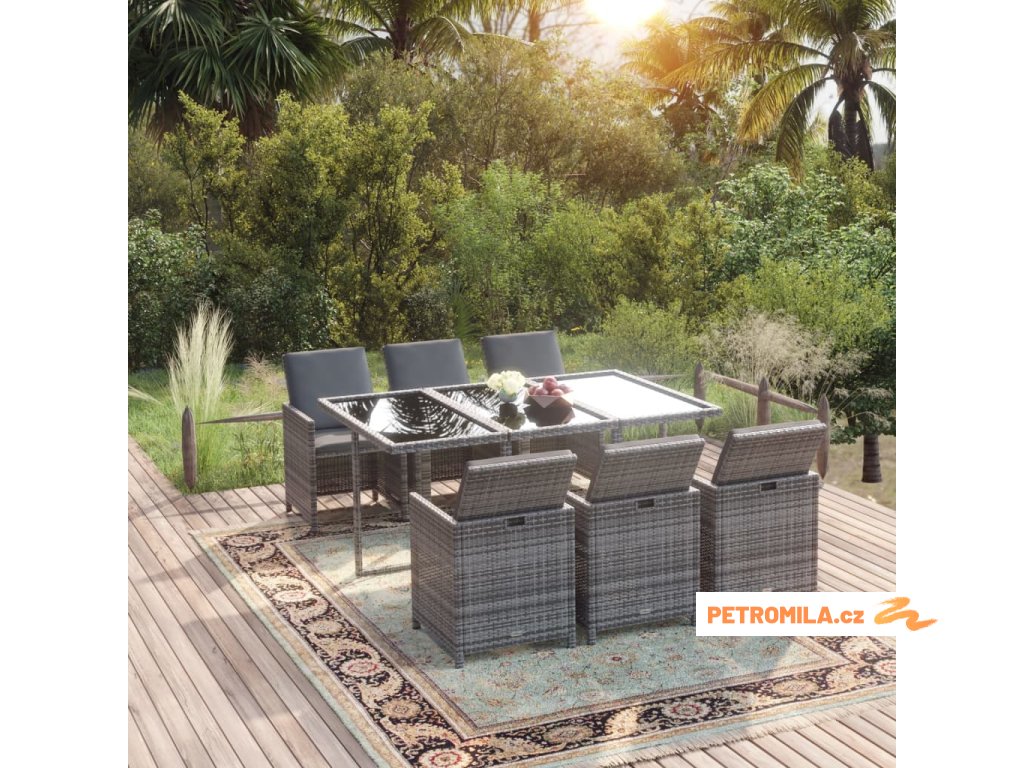 7dílný zahradní jídelní set s poduškami polyratan šedý