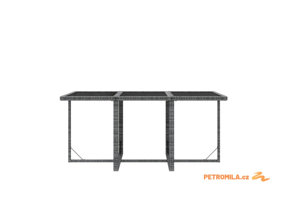- Materiál: PE ratan, práškově lakovaná ocel, tvrzené sklo
