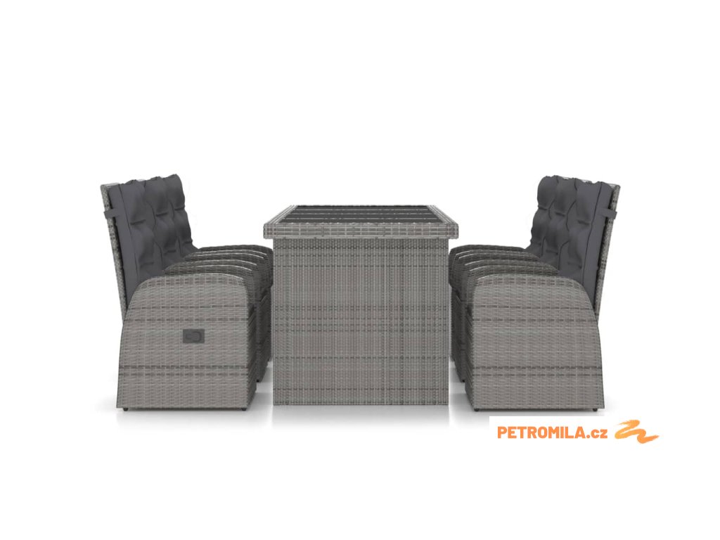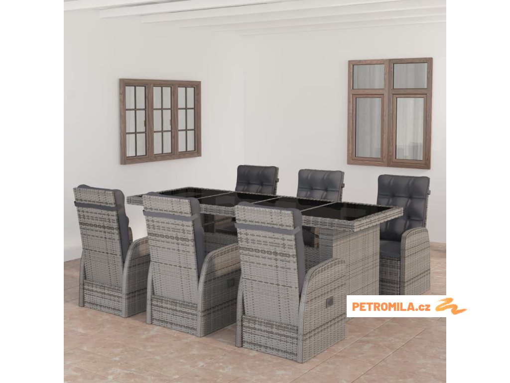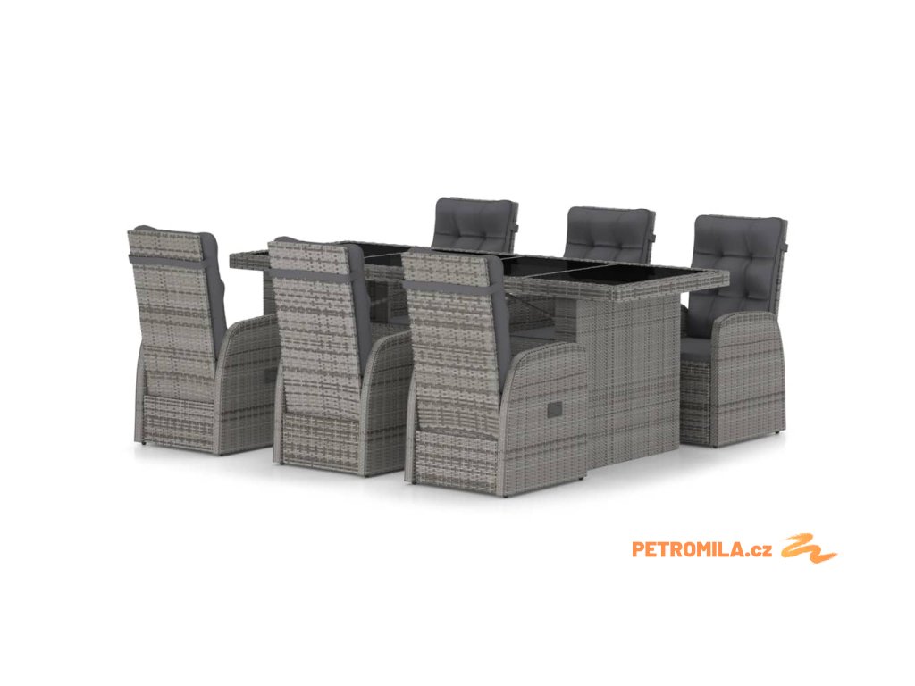 7dílný zahradní jídelní set s poduškami polyratan šedý