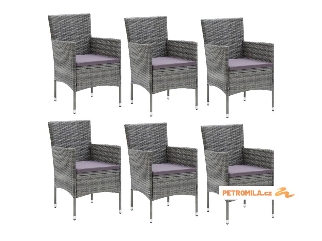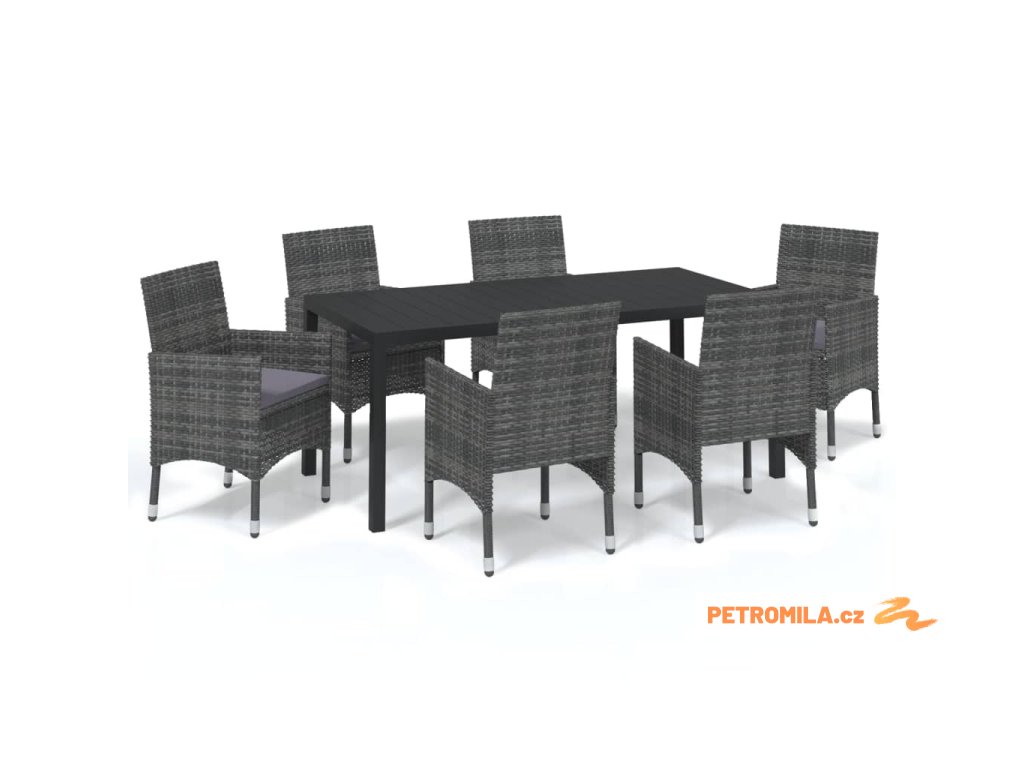 7dílný zahradní jídelní set s poduškami polyratan šedý