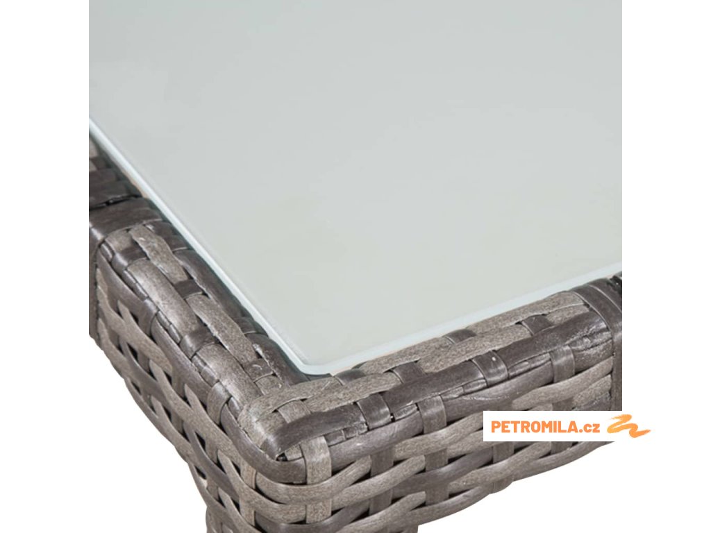 - Materiál: PE ratan + skleněná stolní deska + ocelový rám s práškovým nástřikem