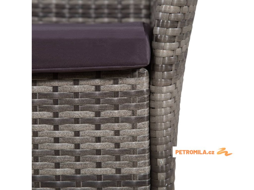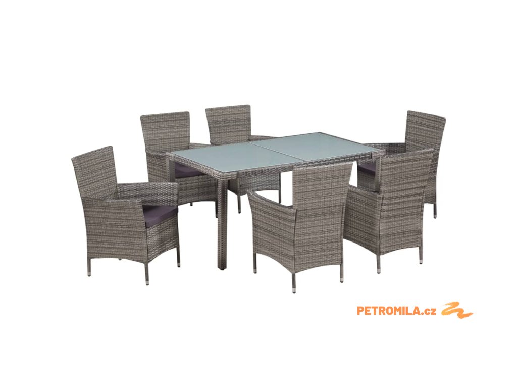 7dílný zahradní jídelní set s poduškami polyratan šedý