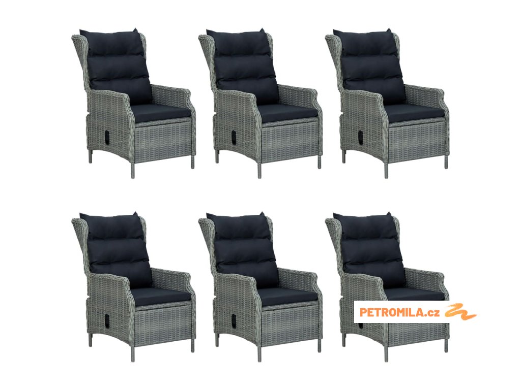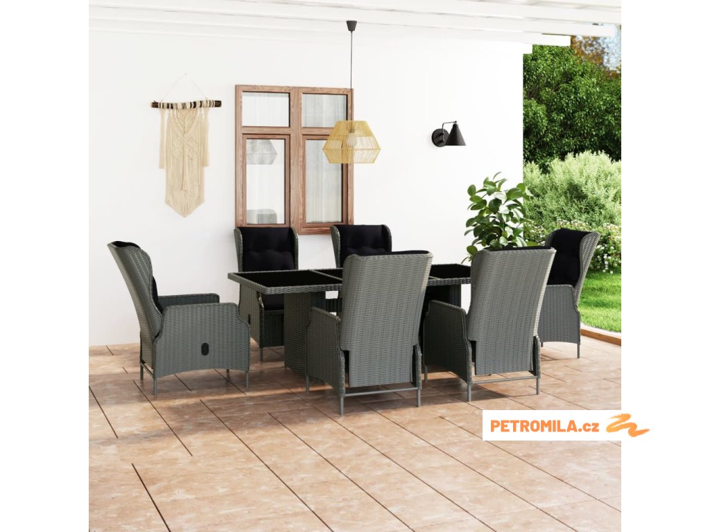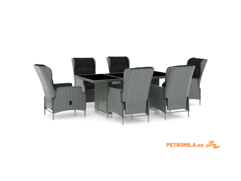 7dílný zahradní jídelní set s poduškami polyratan světle šedý