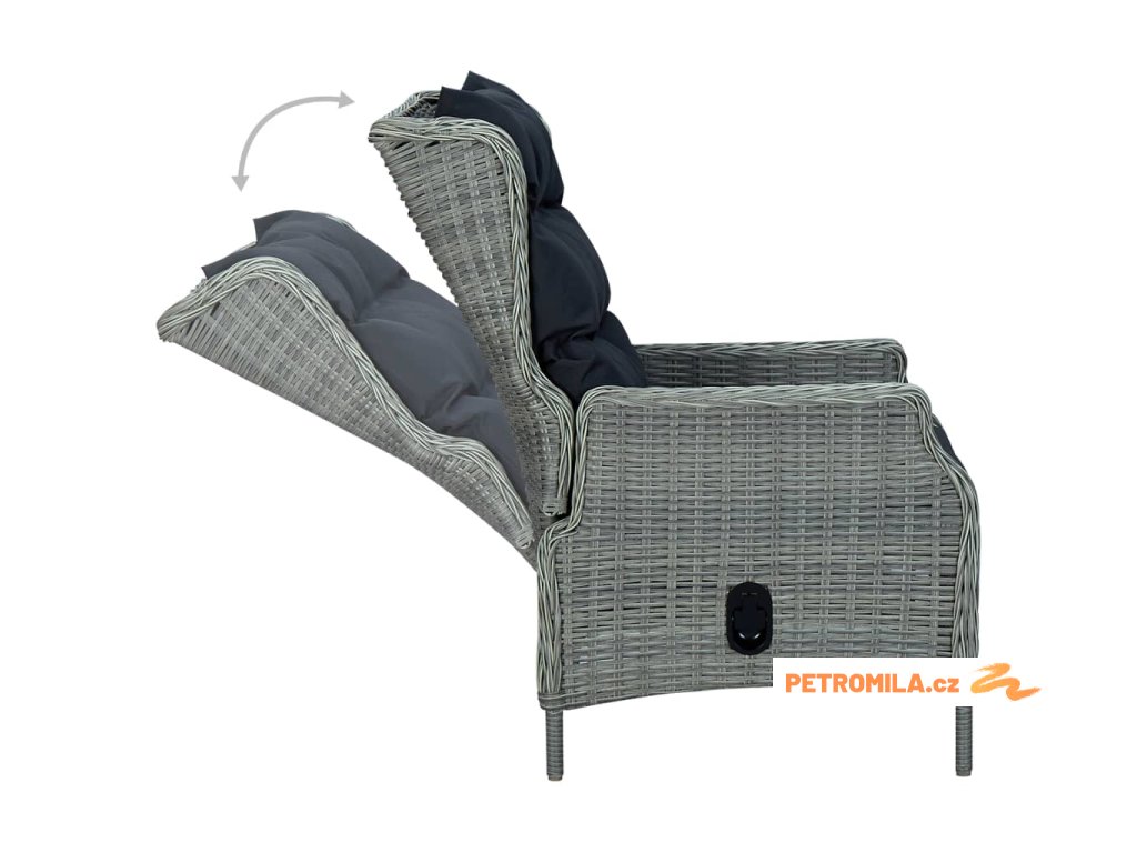 Zahradní nábytek je vyrobený z lehkého kulatého PE ratanu, který nevyžaduje téměř žádnou údržbu a snadno se čistí vlhkým hadříkem. Skvěle se proto hodí pro venkovní použití. Křesla i stůl mají rám z práškově lakované oceli, což jim zajišťuje výtečnou stabilitu a odolnost. Skleněná stolní deska dodá vašemu venkovnímu bydlení nádech luxusu a výborně vám poslouží k podávání večeře nebo k vystavení dekorativních předmětů. Hustě polstrované podušky vám při odpočinku poskytnou maximální pohodlí. Jejich potahy jsou opatřené zipem, aby se vám lépe stahovaly a praly. Mechanismus s plynovým pístem umožňuje nastavit opěradlo do různých pozic. Stisknutím bočního tlačítka můžete opěradlo sklopit a příjemně se natáhnout.