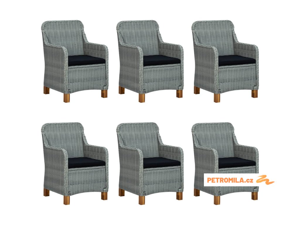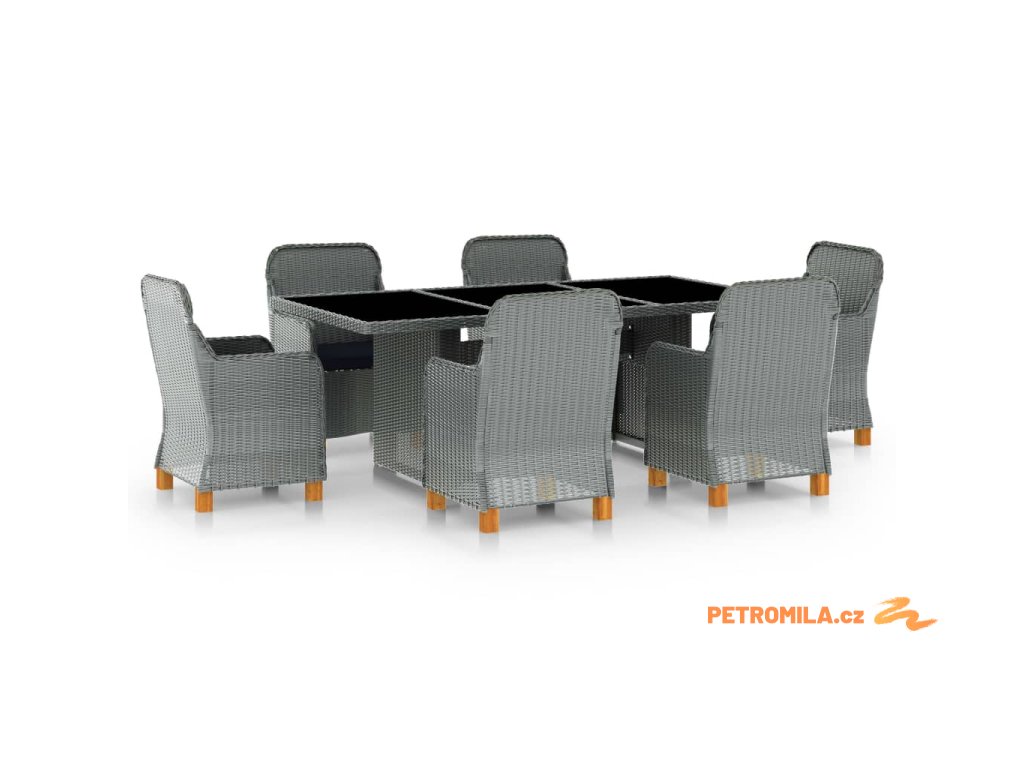 7dílný zahradní jídelní set s poduškami polyratan světle šedý