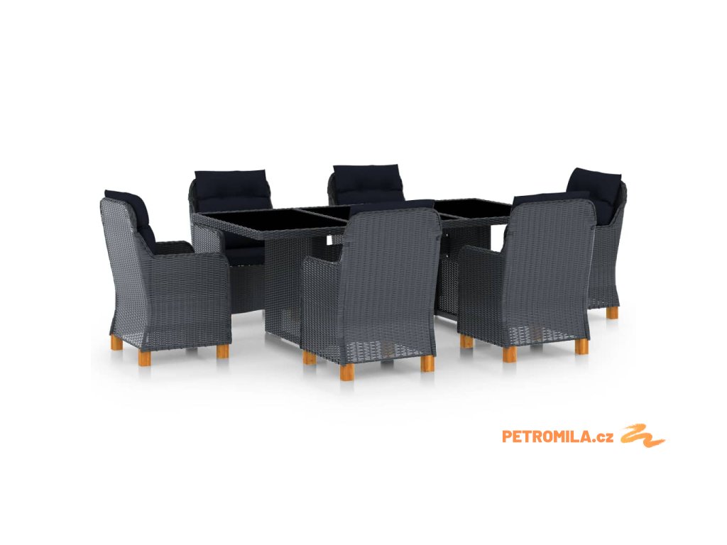 7dílný zahradní jídelní set s poduškami polyratan tmavě šedý