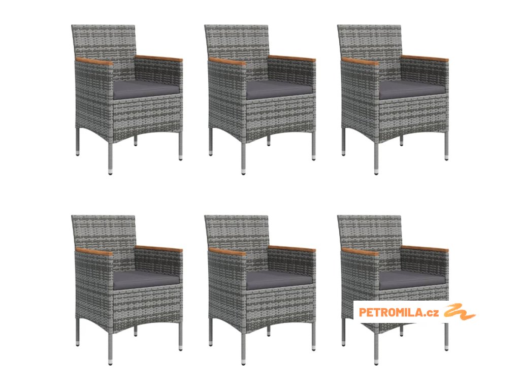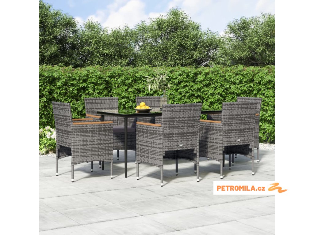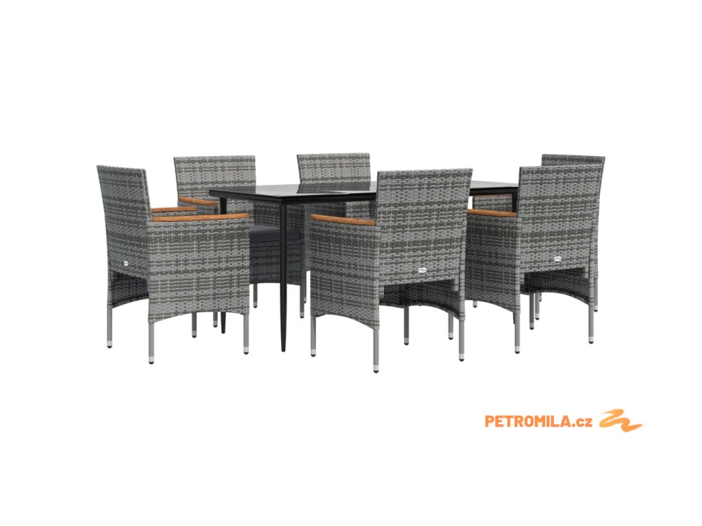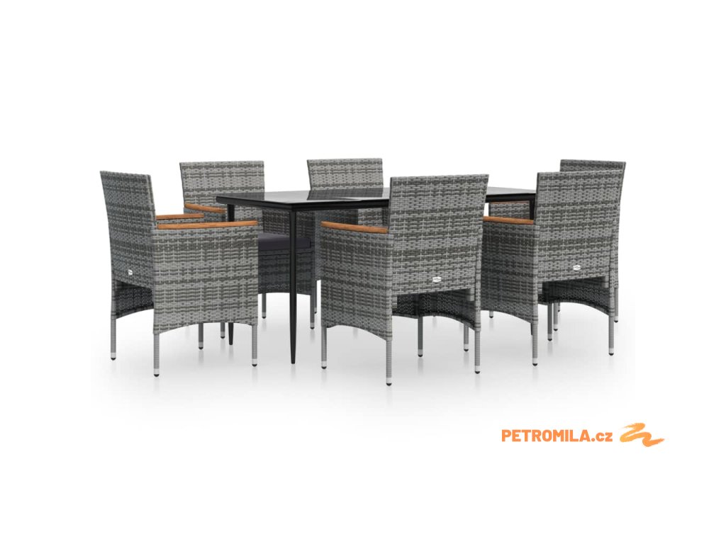 7dílný zahradní jídelní set s poduškami šedý a černý