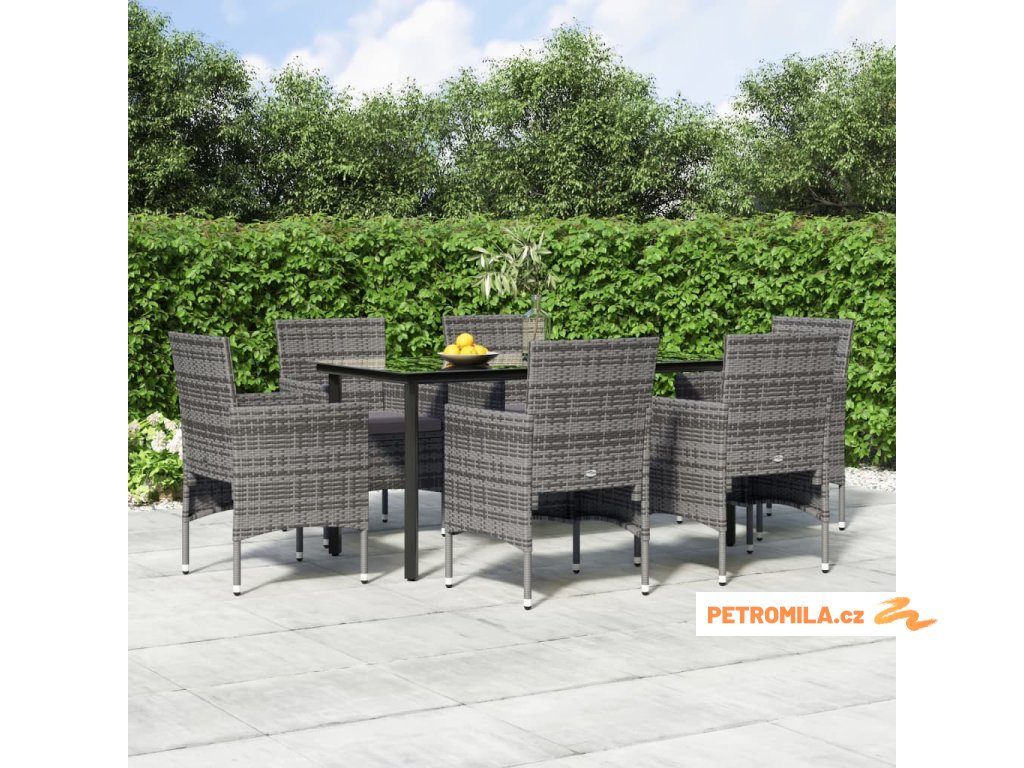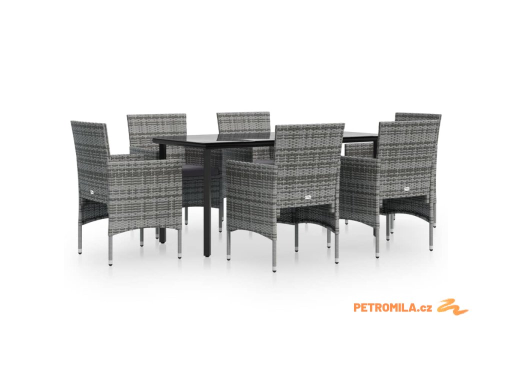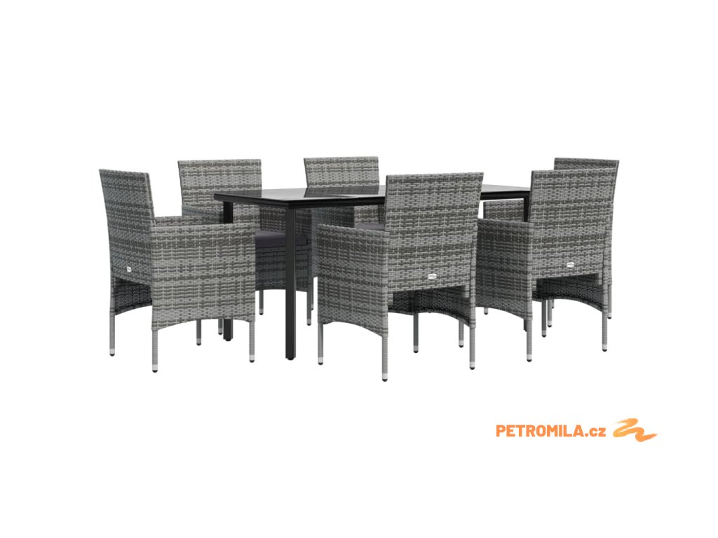 7dílný zahradní jídelní set s poduškami šedý a černý
