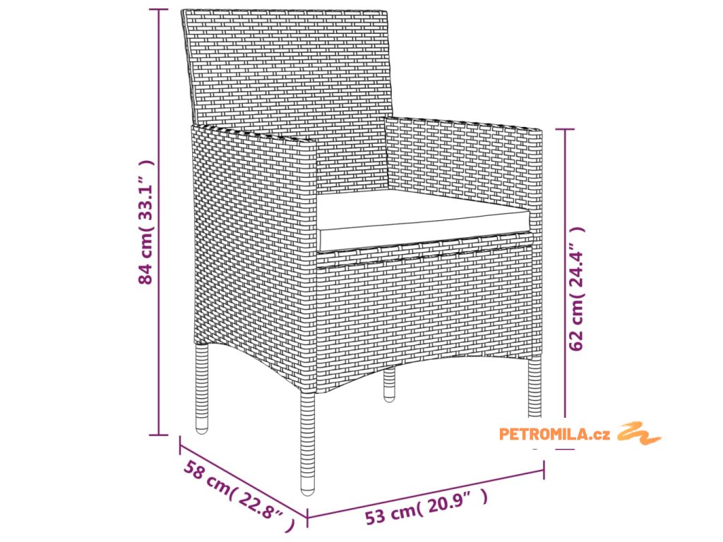 Zahradní jídelní souprava 3 pcs Černá Poly ratan