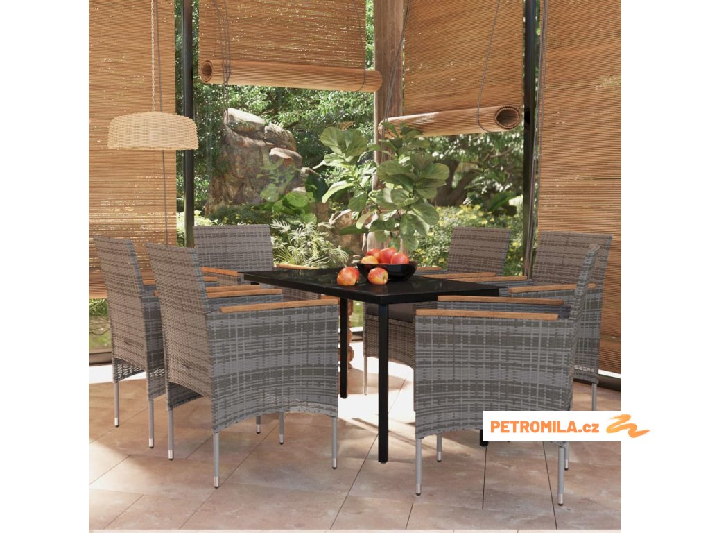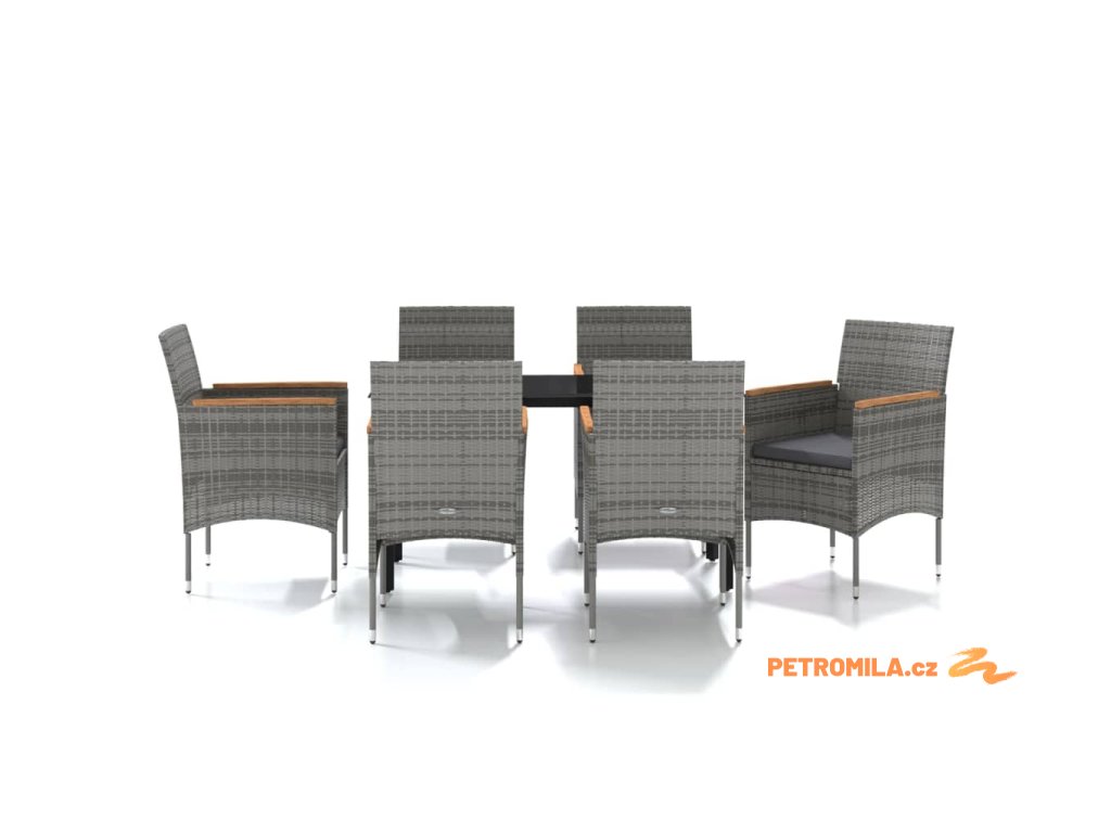 7dílný zahradní jídelní set s poduškami šedý a černý