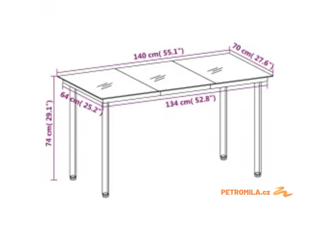 - Rozměry stolu: 140 x 70 x 74 cm (D x Š x V)