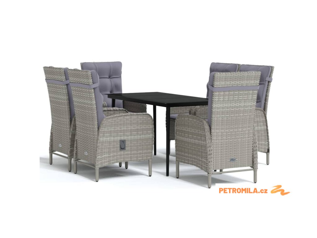 7dílný zahradní jídelní set s poduškami šedý a černý