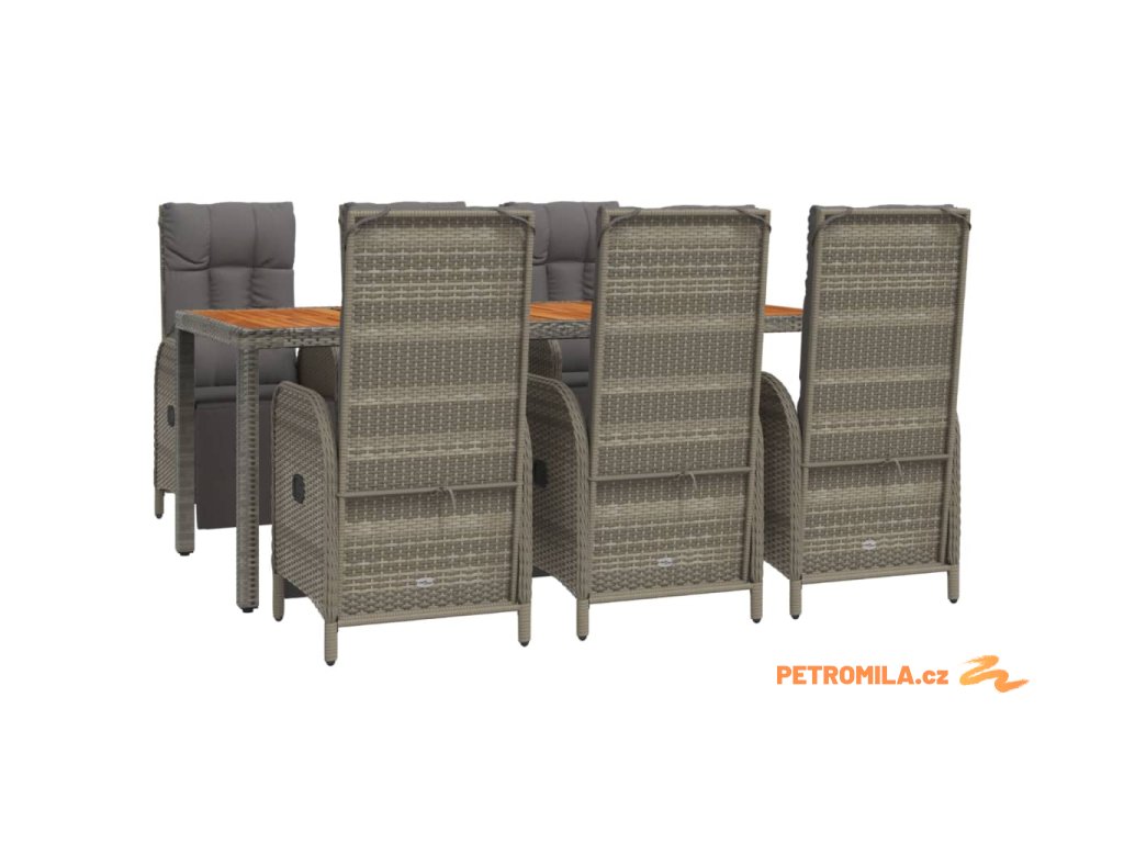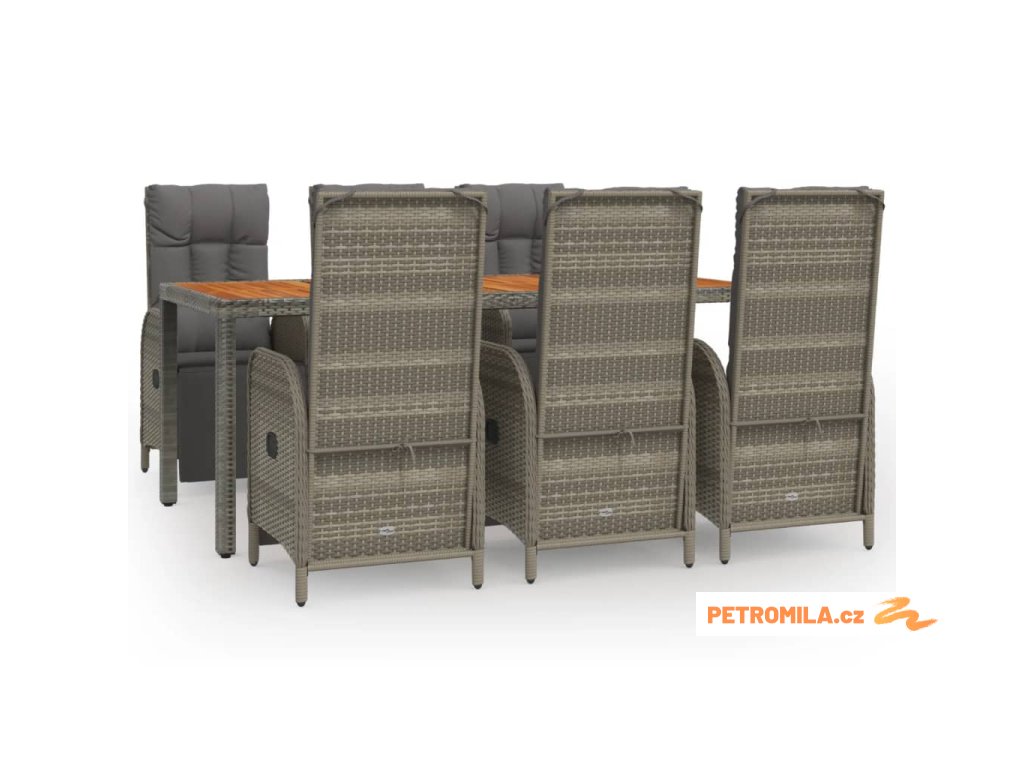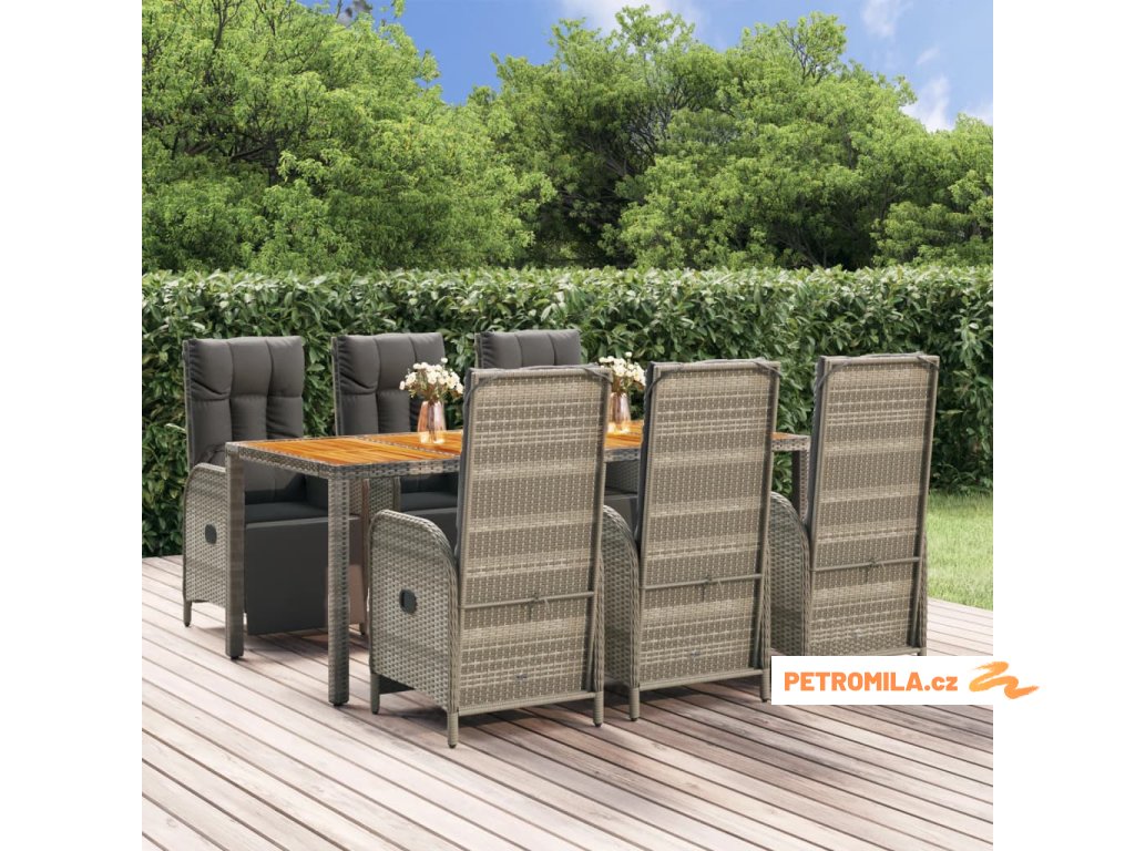 7dílný zahradní jídelní set s poduškami šedý polyratan
