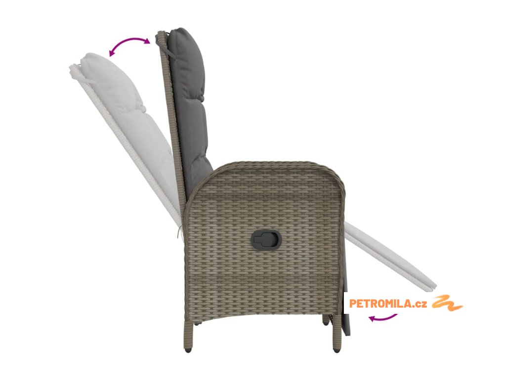 - Materiál: PE ratan, práškově lakovaná ocel, masivní akáciové dřevo s olejovou povrchovou úpravou