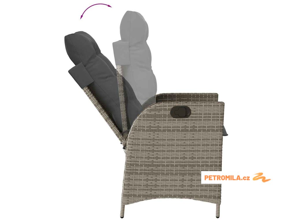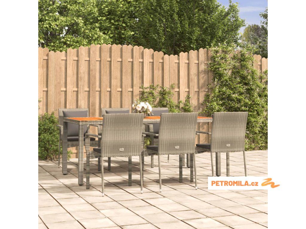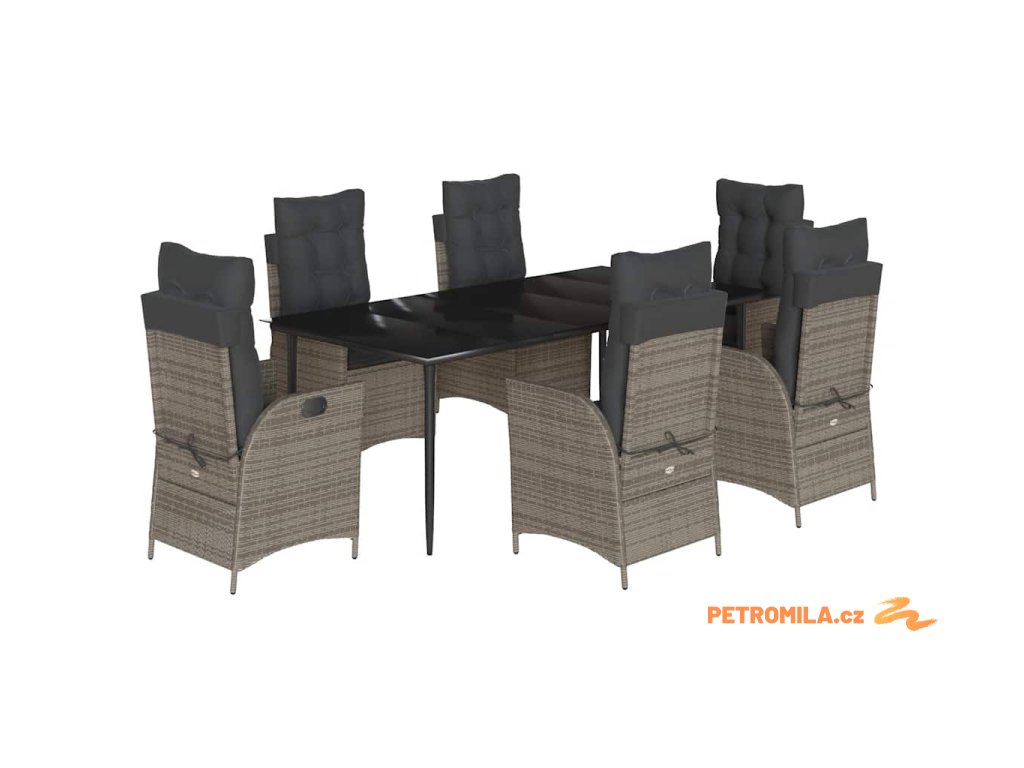 7dílný zahradní jídelní set s poduškami šedý polyratan