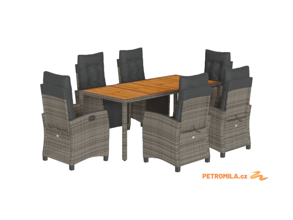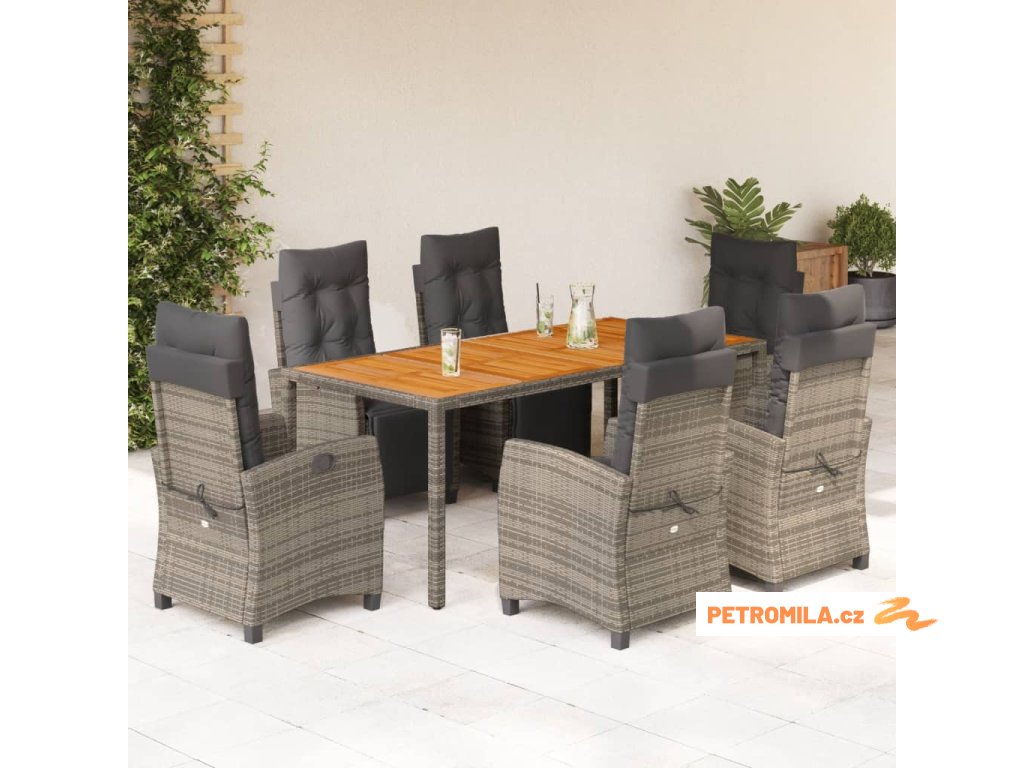 7dílný zahradní jídelní set s poduškami šedý polyratan