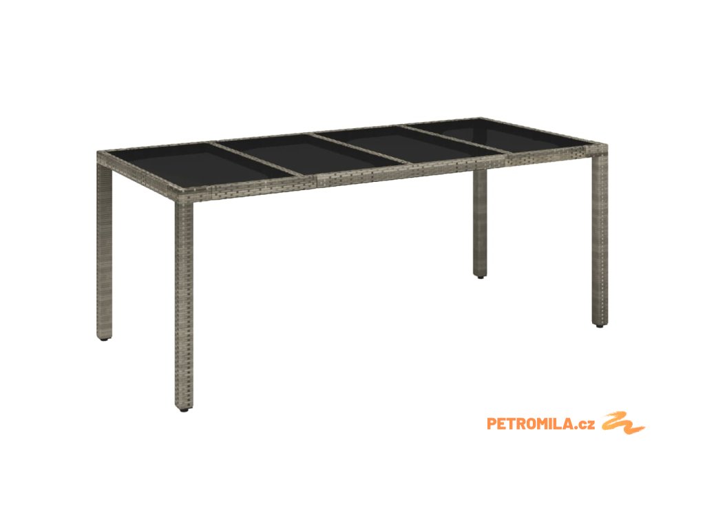 - Materiál: PE ratan, práškově lakovaná ocel, tvrzené sklo