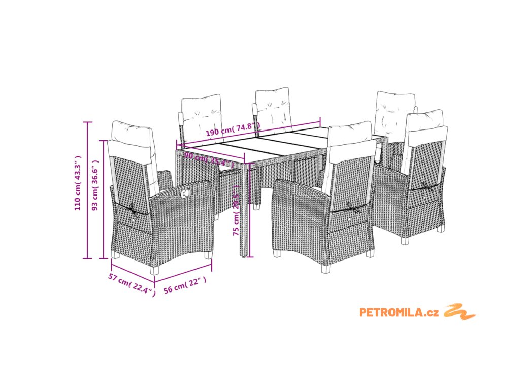 - Rozměry: 190 x 90 x 75 cm (D x Š x V)