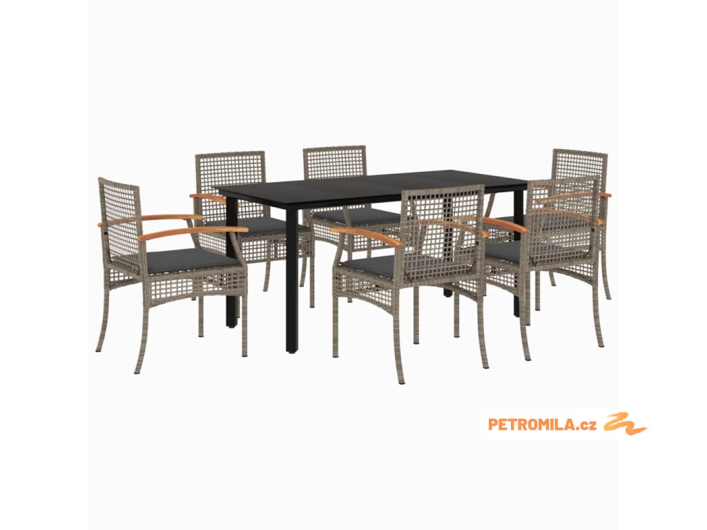 7dílný zahradní jídelní set s poduškami šedý polyratan