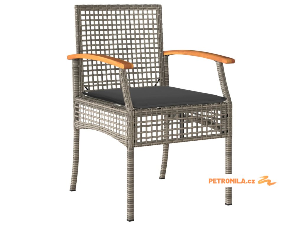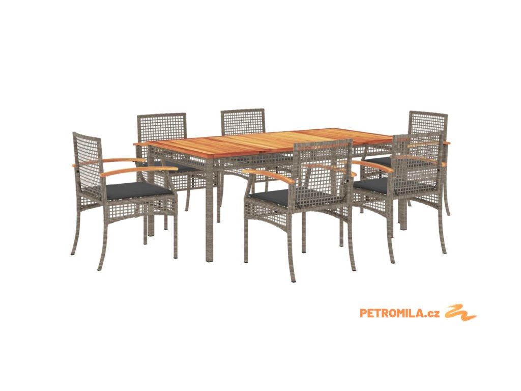7dílný zahradní jídelní set s poduškami šedý polyratan