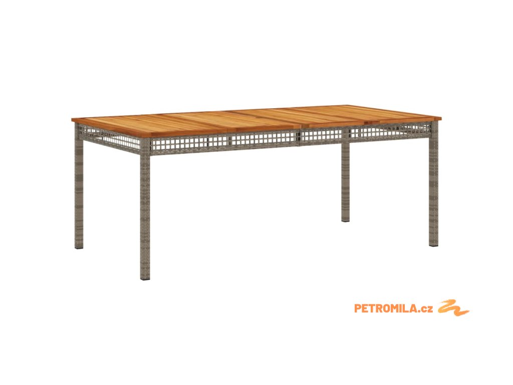 - Materiál: PE ratan, práškově lakovaná ocel, masivní akáciové dřevo s olejovou povrchovou úpravou