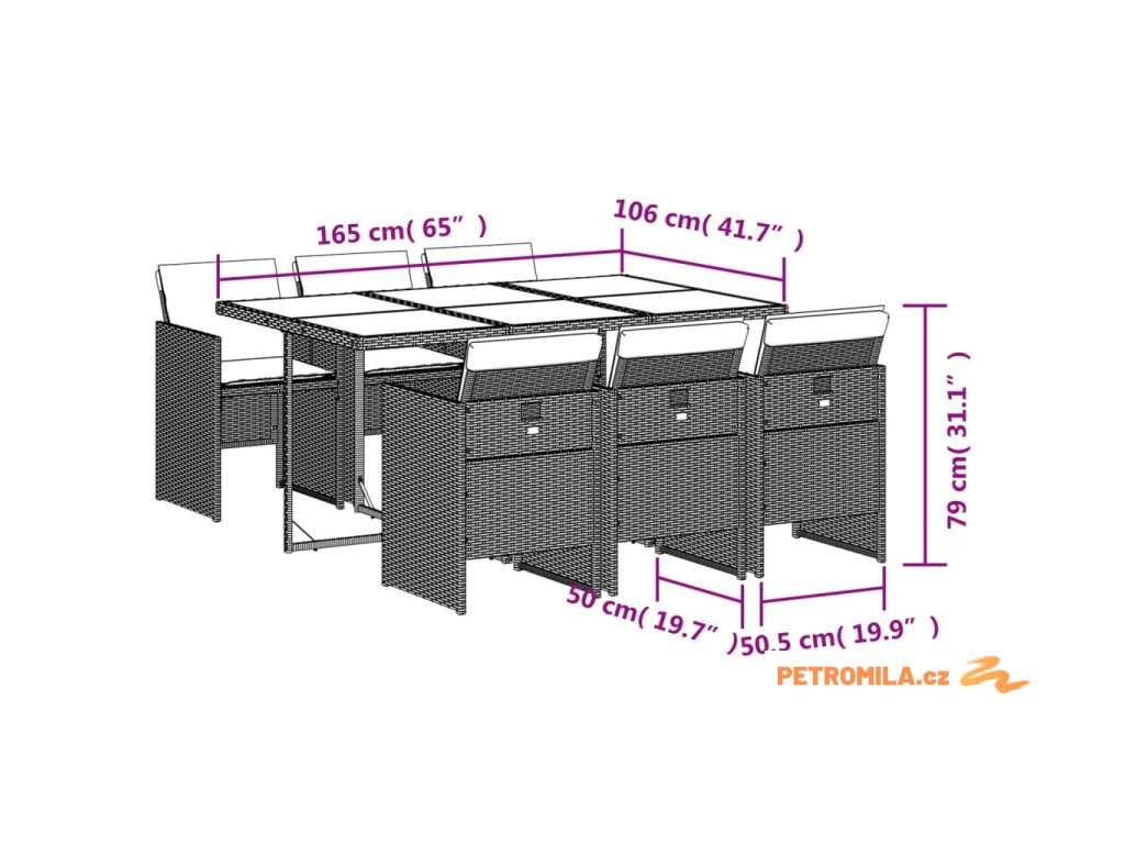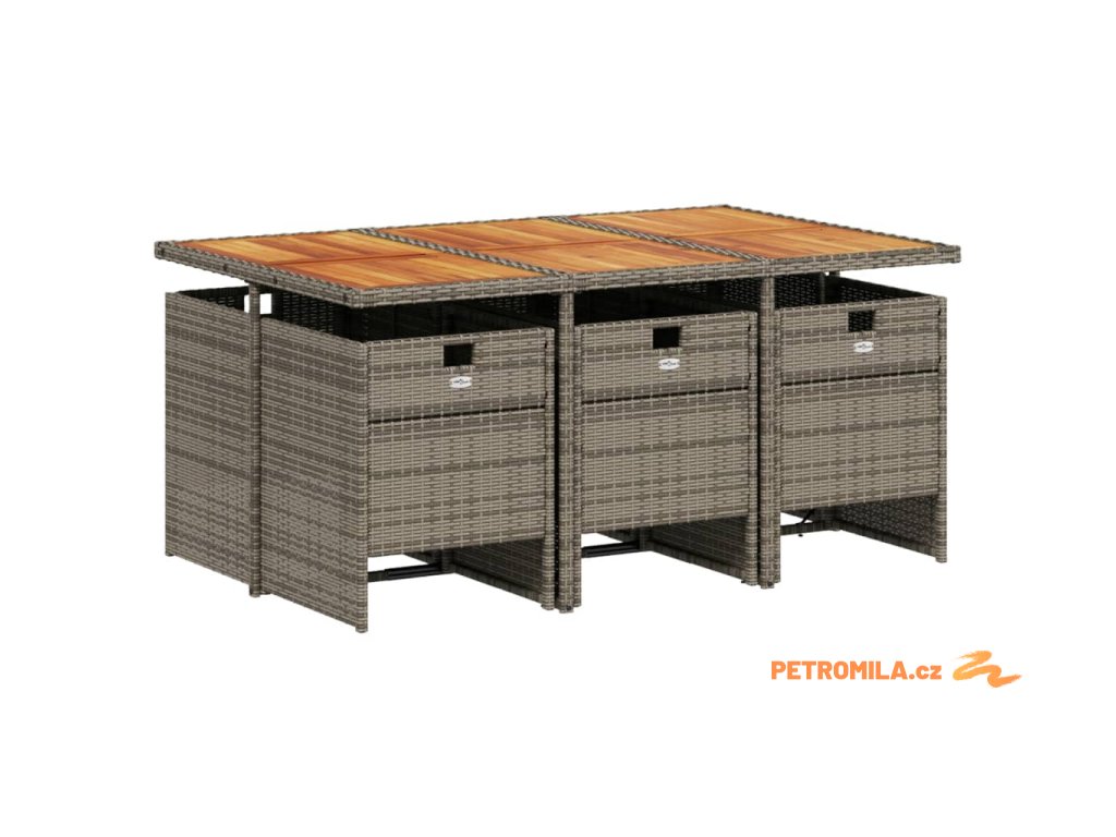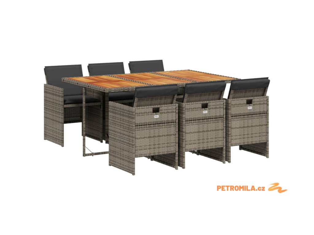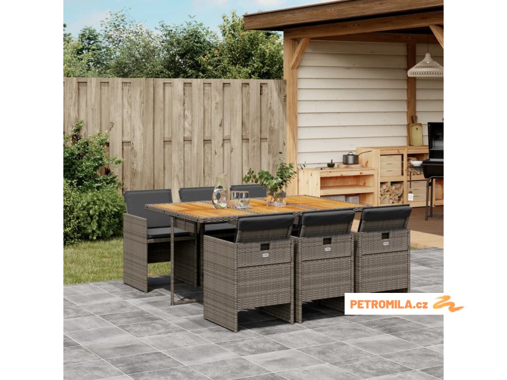 7dílný zahradní jídelní set s poduškami šedý polyratan
