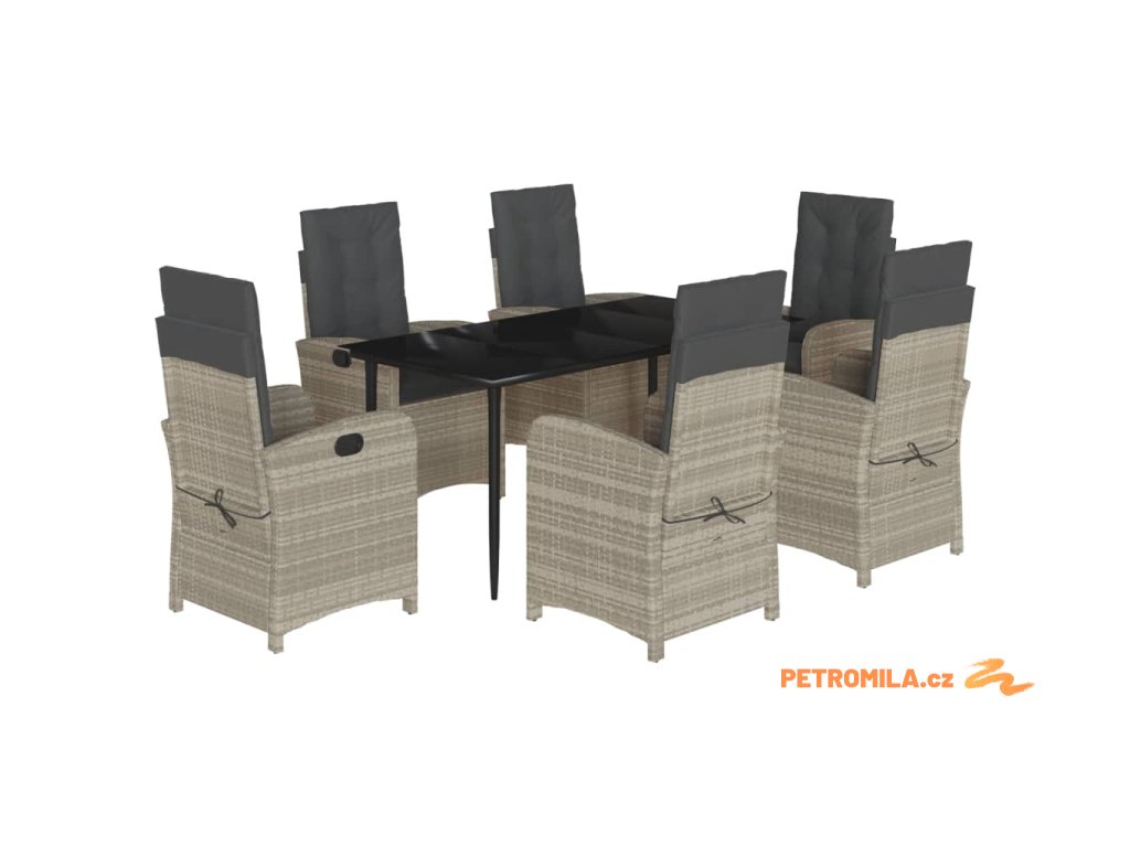 7dílný zahradní jídelní set s poduškami světle šedý polyratan