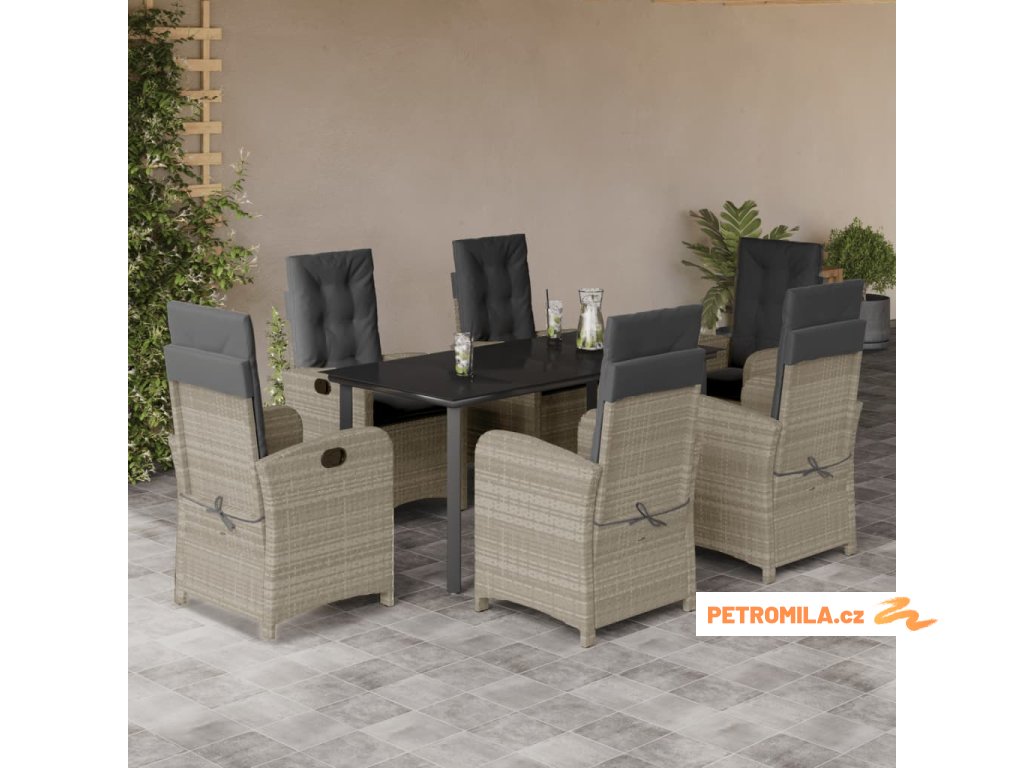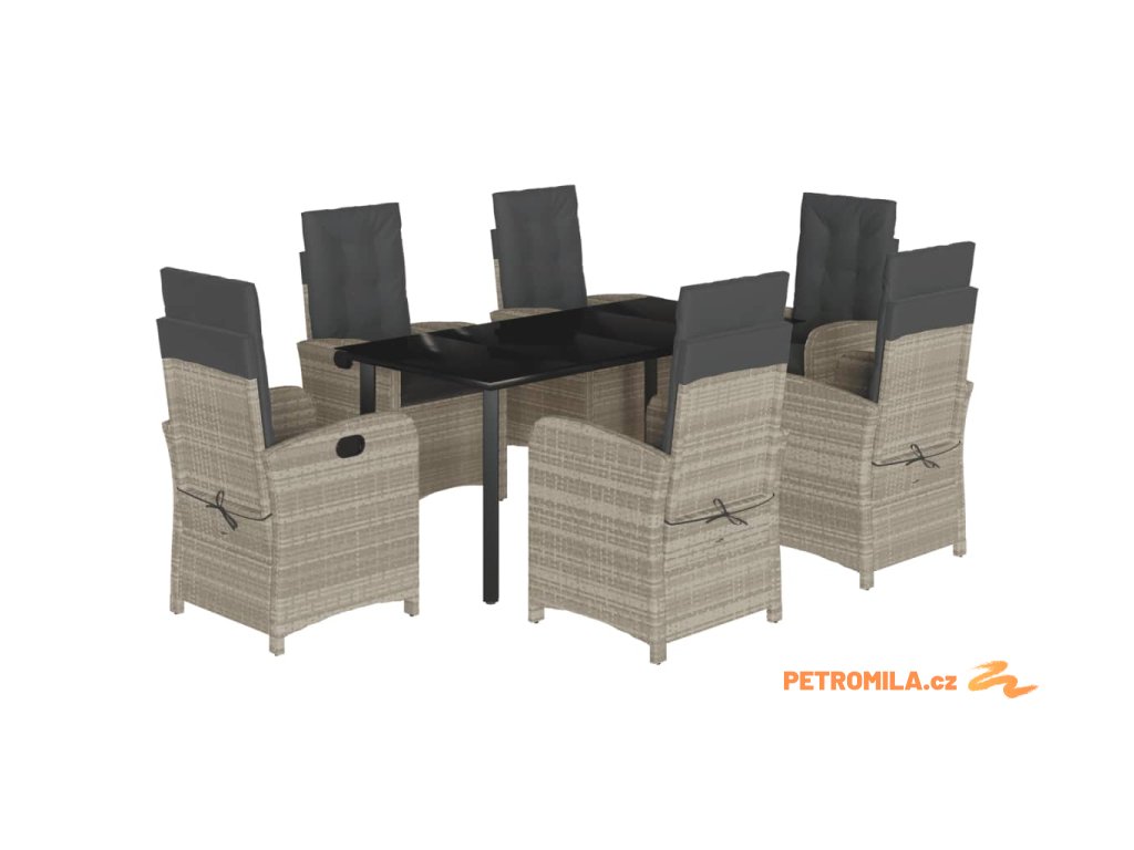 7dílný zahradní jídelní set s poduškami světle šedý polyratan
