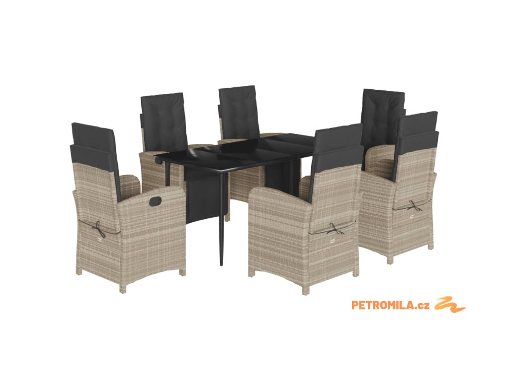 9dílný zahradní jídelní set s poduškami světle šedý polyratan