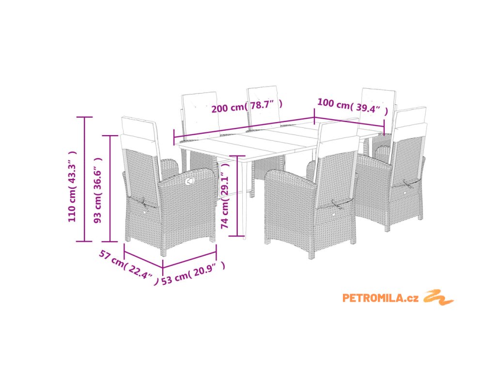 - Rozměry: 200 x 100 x 74 cm (D x Š x V)
