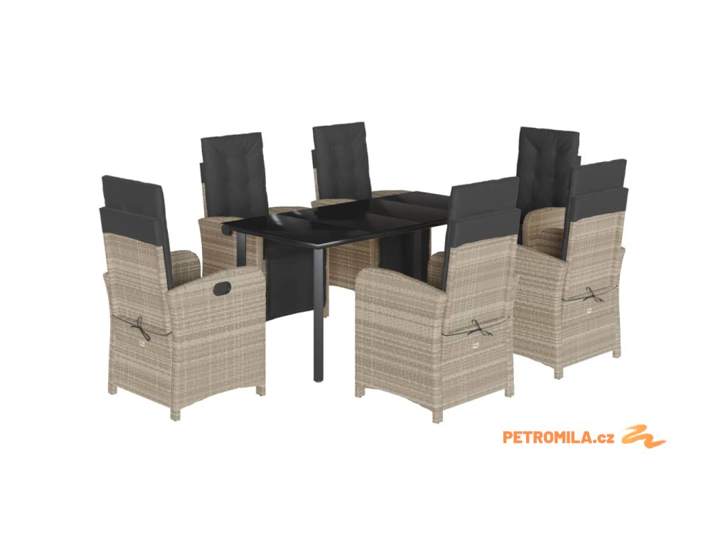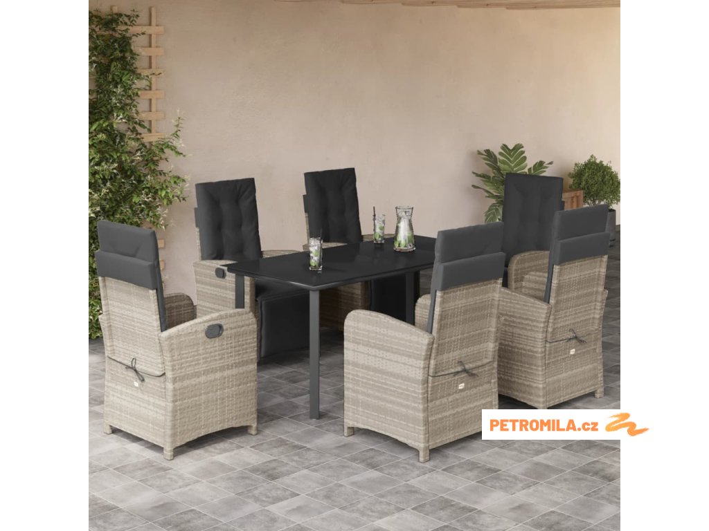 7dílný zahradní jídelní set s poduškami světle šedý polyratan