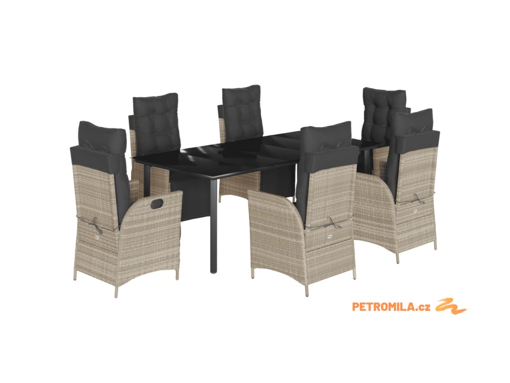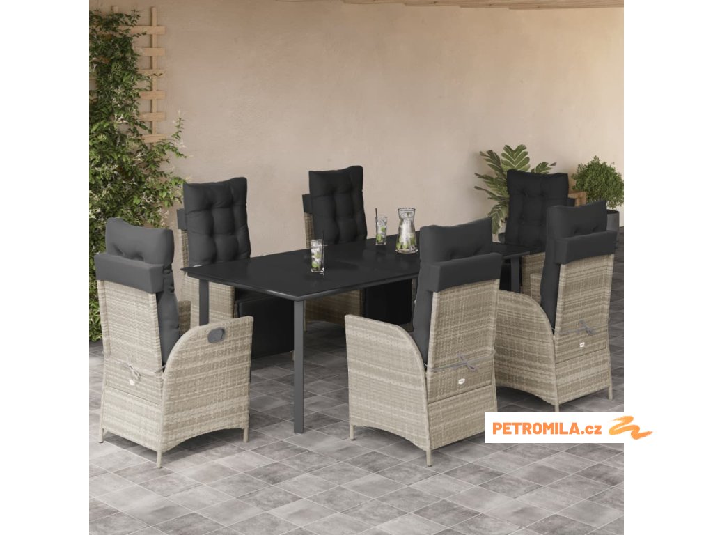 7dílný zahradní jídelní set s poduškami světle šedý polyratan