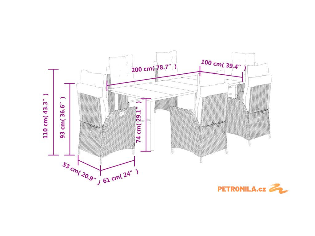 - Rozměry: 200 x 100 x 74 cm (D x Š x V)