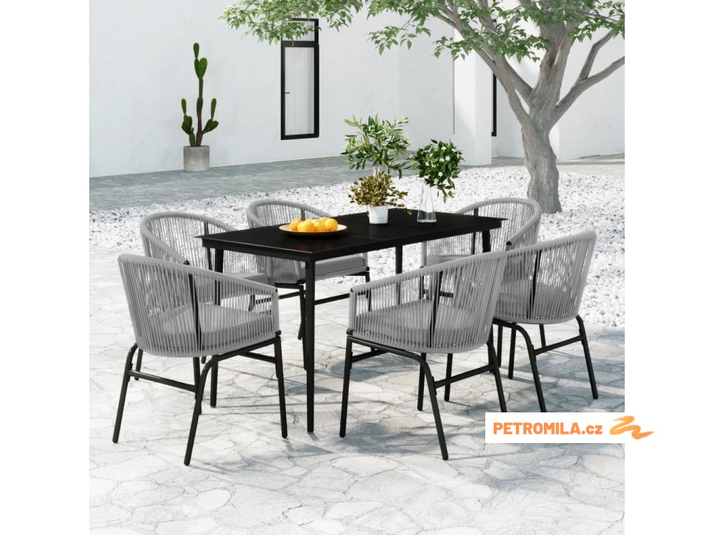 7dílný zahradní jídelní set šedý