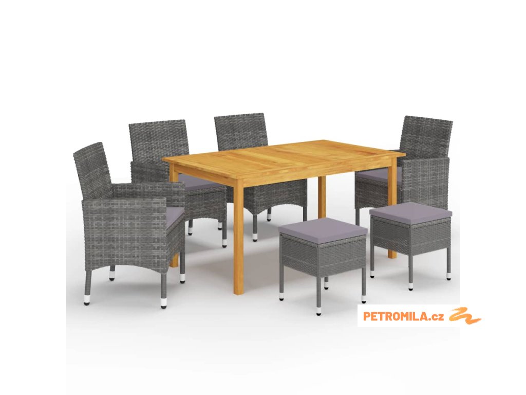 7dílný zahradní jídelní set šedý