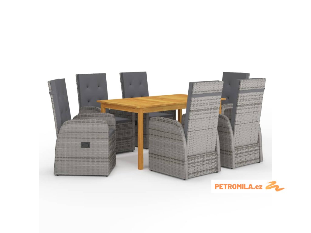 Jídelní stůl je zhotovený z masivního akáciového dřeva s olejovaným povrchem, takže je stabilní, odolný a nenáročný na údržbu. Jídelní židle mají rám z práškově lakované oceli, opletený PE ratanem, který výborně vzdoruje klimatickým vlivům. Dlouho vám proto vydrží a snadno je očistíte. Opěradlo lze sklopit zatažením za tlačítko na boku. Židle mají lehkou konstrukci, není tedy problém je přesunout, kam potřebujete. Navíc jsou opatřené mimořádně pohodlnými, hustě polstrovanými poduškami pro maximální komfort. Jejich polyesterové potahy nevyžadují téměř žádnou údržbu a dají se stáhnout a oprat.
