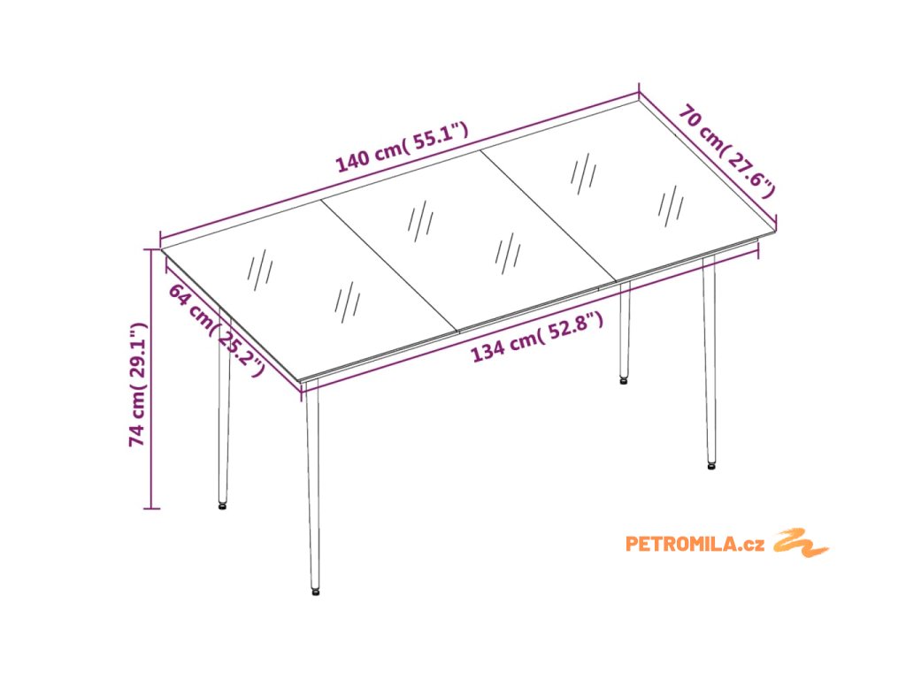 - Rozměry: 140 x 70 x 74 cm (D x Š x V)