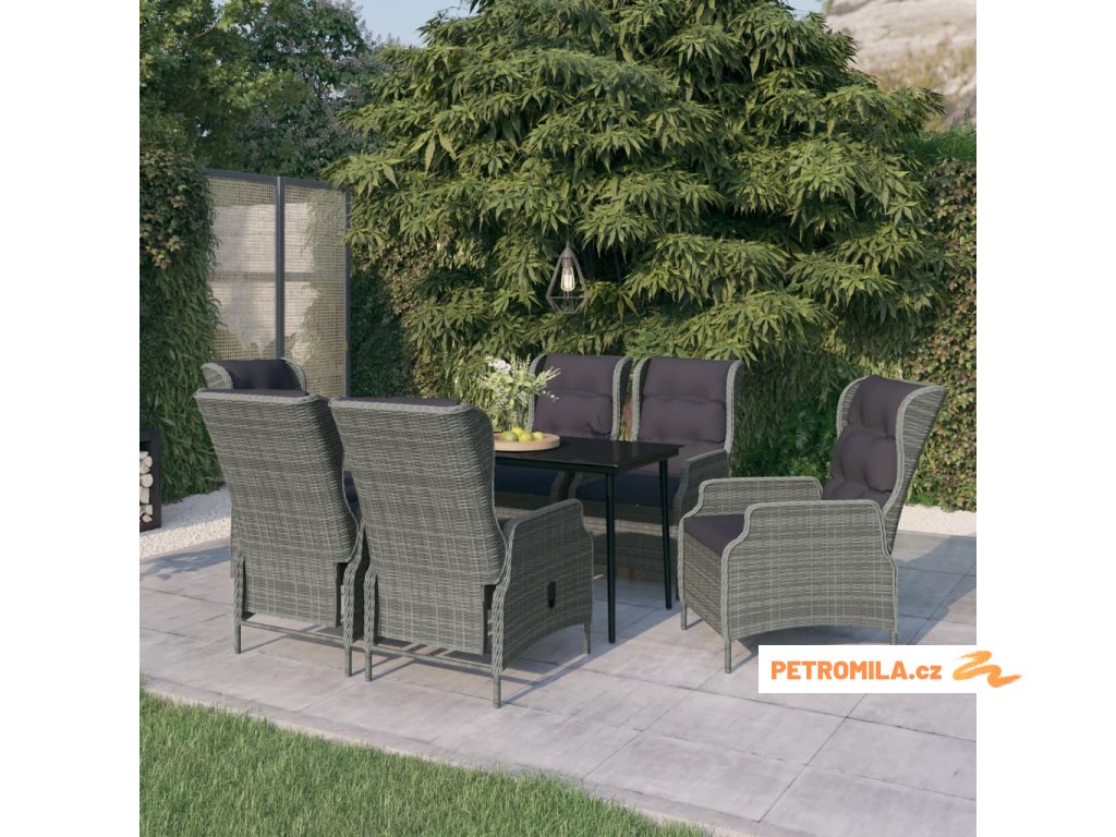 Praktický zahradní jídelní set má ocelový rám, takže je pevný a má dlouhou životnost. Polohovací židle jsou vyrobené z voděodolného PE ratanu, který nevyžaduje žádnou údržbu, hodí se proto skvěle k venkovnímu použití. Hustě polstrované podušky vám při stolování poskytnou maximální pohodlí. Potah podušky je opatřený zipem, lze ho tedy stáhnout a vyprat. Pomocí mechanismu s plynovým pístem si navíc snadno přizpůsobíte opěradlo křesla podle vlastních potřeb. Stisknutím tlačítka na boku ho sklopíte do té nejpohodlnější pozice. Hladká skleněná stolní deska, kterou jednoduše očistíte vlhkým hadříkem, je ideální k podávání jídla a pití nebo k vystavování různých dekorativních předmětů.