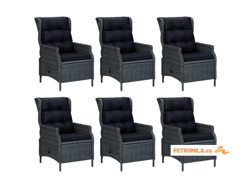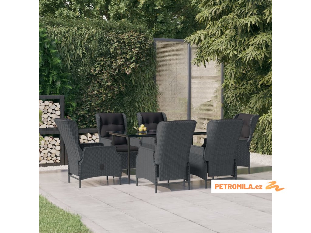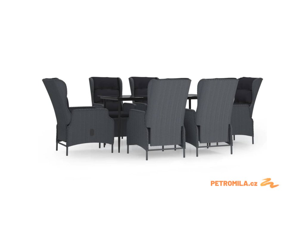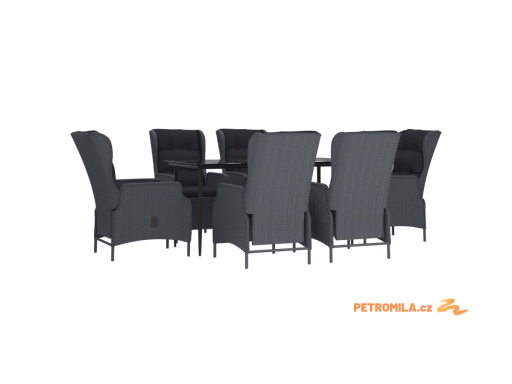 7dílný zahradní jídelní set tmavě šedý polyratan