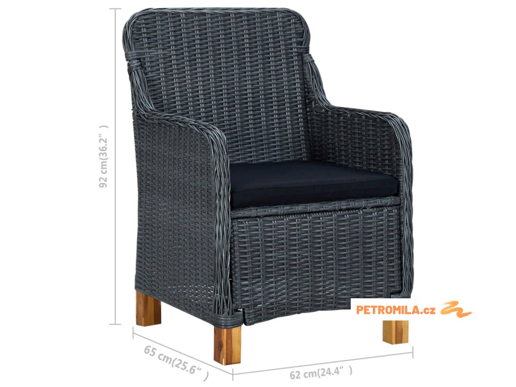 - Materiál: kulatý PE ratan, masivní akáciové dřevo, práškově lakovaná ocel