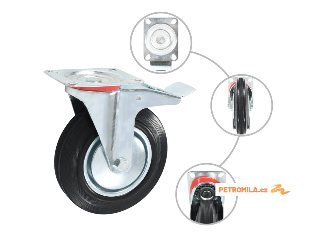 Kolečka jsou vyrobená z gumy, která je známá pro svou schopnost pohlcovat nárazy a vibrace. Ať už tedy kolečka namontujete na cokoliv, budete to moci přesouvat hladce a v tichosti. Jejich hladký povrch navíc ochrání vaši podlahu před poškrábáním. Zinkem potažený ocelový rám je odolný proti rzi, dodává kolečkům na odolnosti a prodlužuje jejich životnost. Tato otočná kolečka jsou vybavená brzdou pro flexibilnější ovládání. Každé kolečko má maximální nosnost až 180 kg.