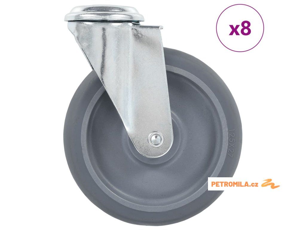 8 ks otočná kolečka s otvorem pro šroub 125 mm