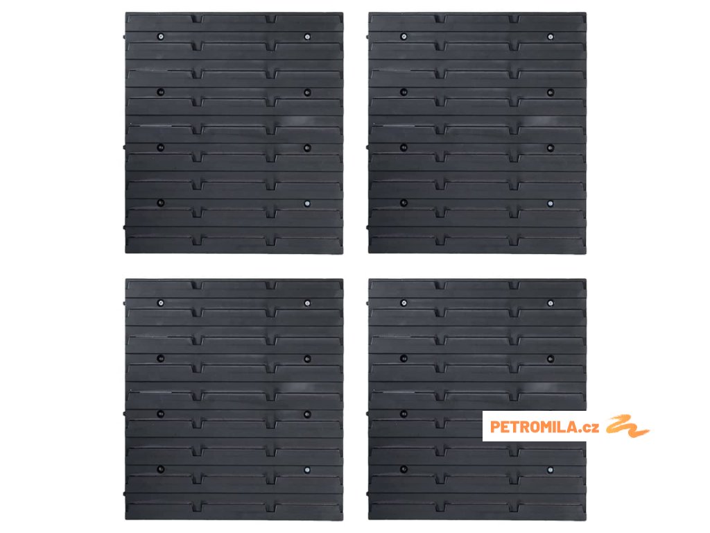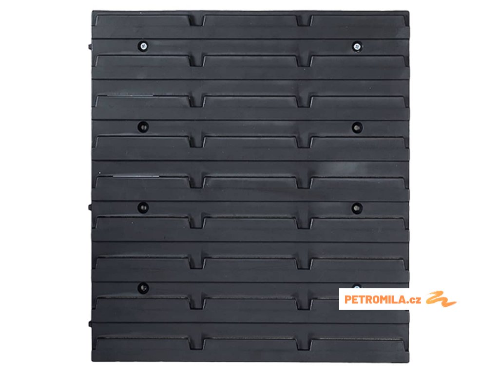 Tyto funkční panely se stohovatelnými boxy nabízí celou řadu možností pro ukládání malých součástek, jako jsou šrouby, hřebíky, matice, objímky, spojky apod. Do 4 pevných nástěnných panelů jsou připevněné držáky a upínače pro nejrůznější typy nářadí a 30 zásobníků, které si lze označit, abyste měli lepší přehled o jejich obsahu. Jednotlivé boxy můžete také samostatně vytahovat a naskládat je na sebe. Sadu panelů na nářadí je možné libovolně rozšiřovat a dá se snadno namontovat na stěnu garáže nebo kůlny. Soupravu skladovacích zásobníků si můžete přizpůsobit dle vlastních potřeb.