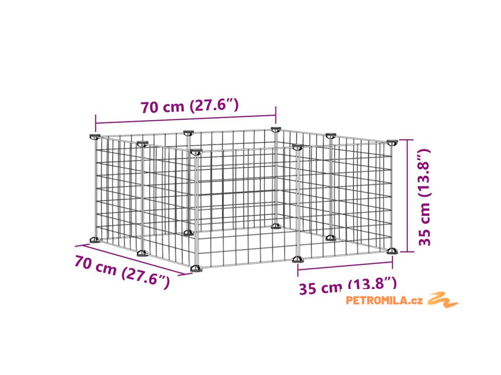 8dílná klec pro domácí mazlíčky černá 35 x 35 cm ocelová