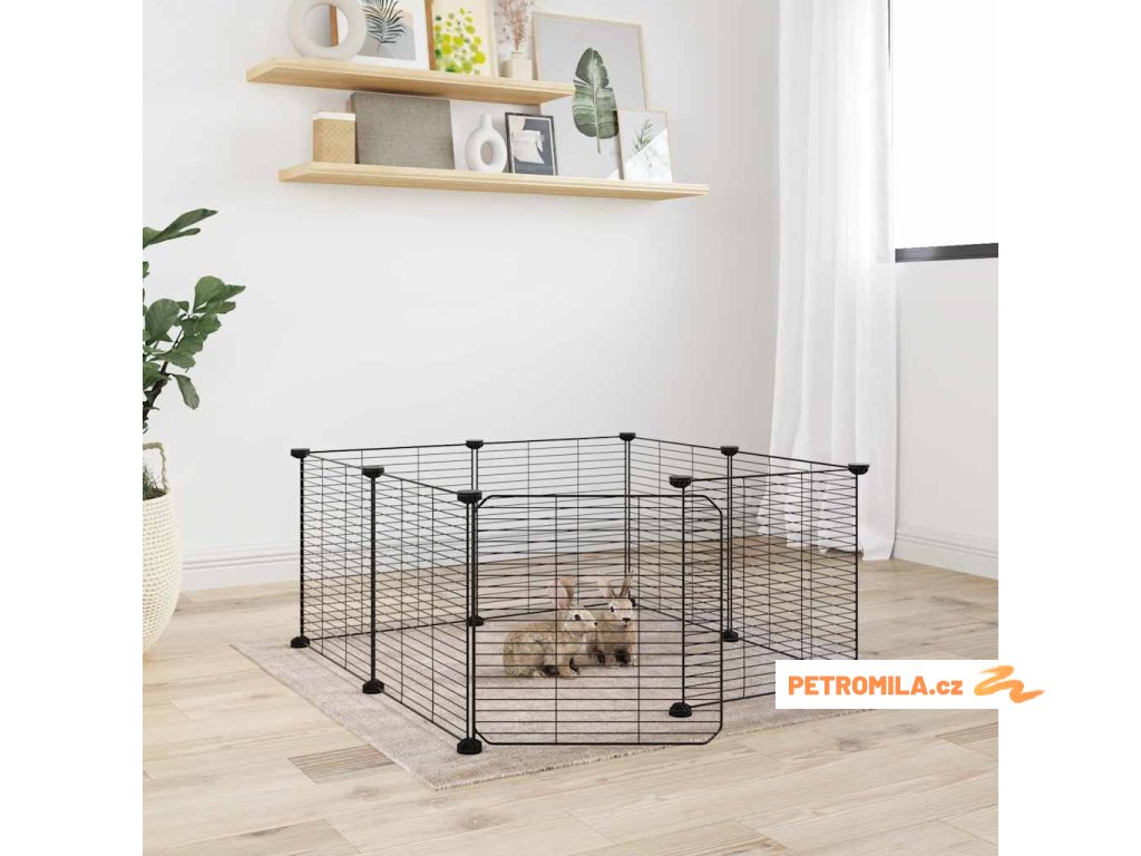 8dílná klec pro domácí mazlíčky s dvířky černá 35 x 35 cm ocel