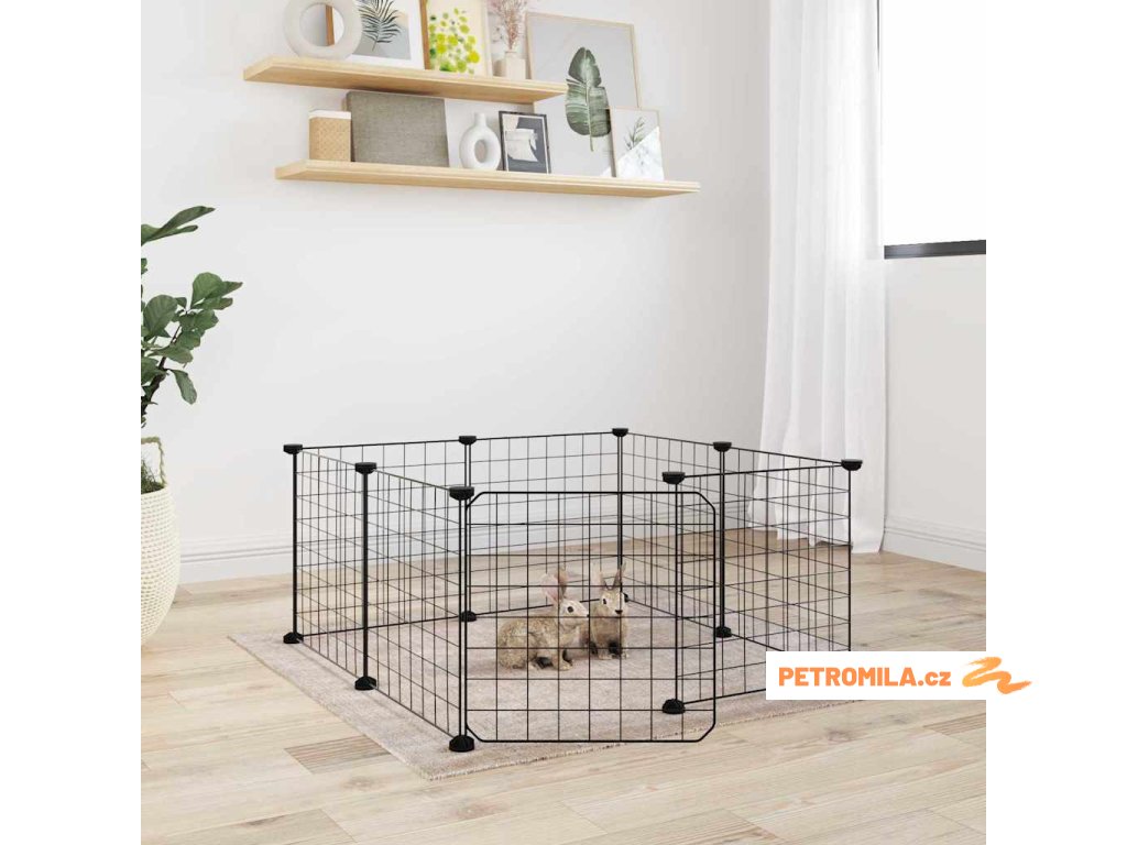 8dílná klec pro domácí mazlíčky s dvířky černá 35 x 35 cm ocel