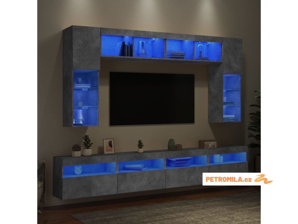 8dílná obývací stěna s LED osvětlením betonově šedá