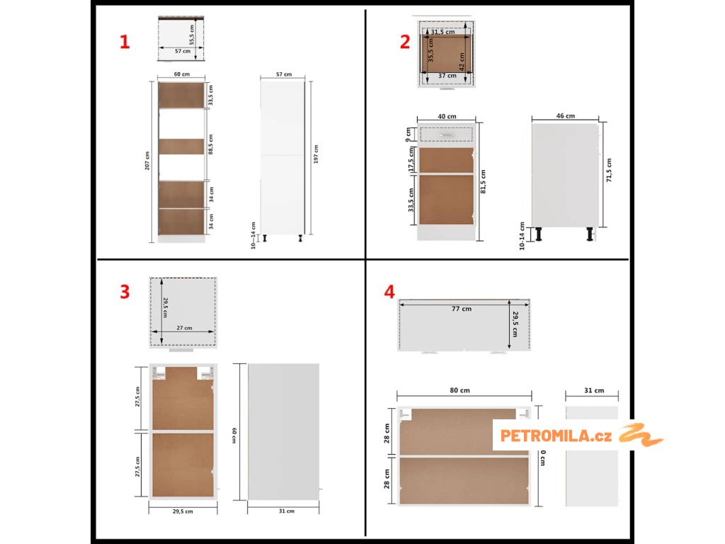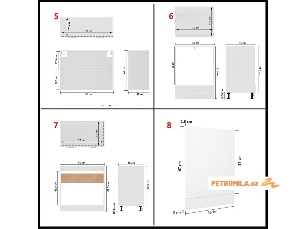 - 1 x Skříňka pod troubu: 60 x 46 x 81,5 cm (Š x H x V)