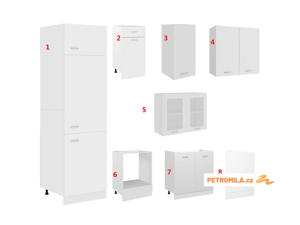 8dílná sada kuchyňských skříněk "Lyon" bílá, dřevěné