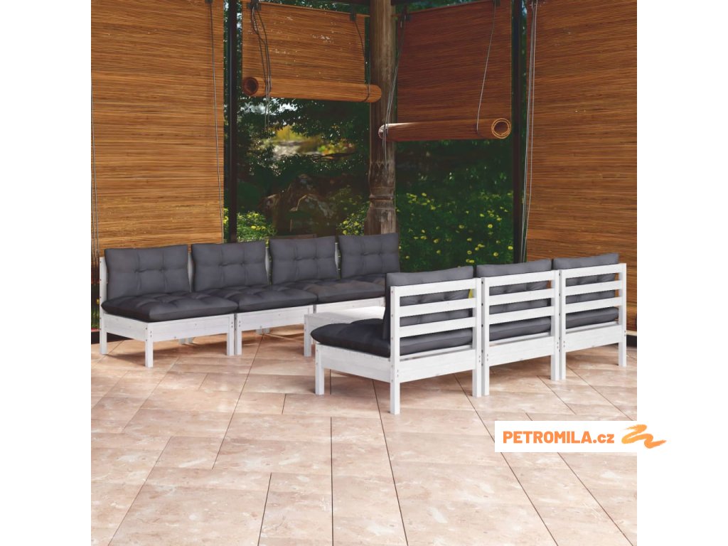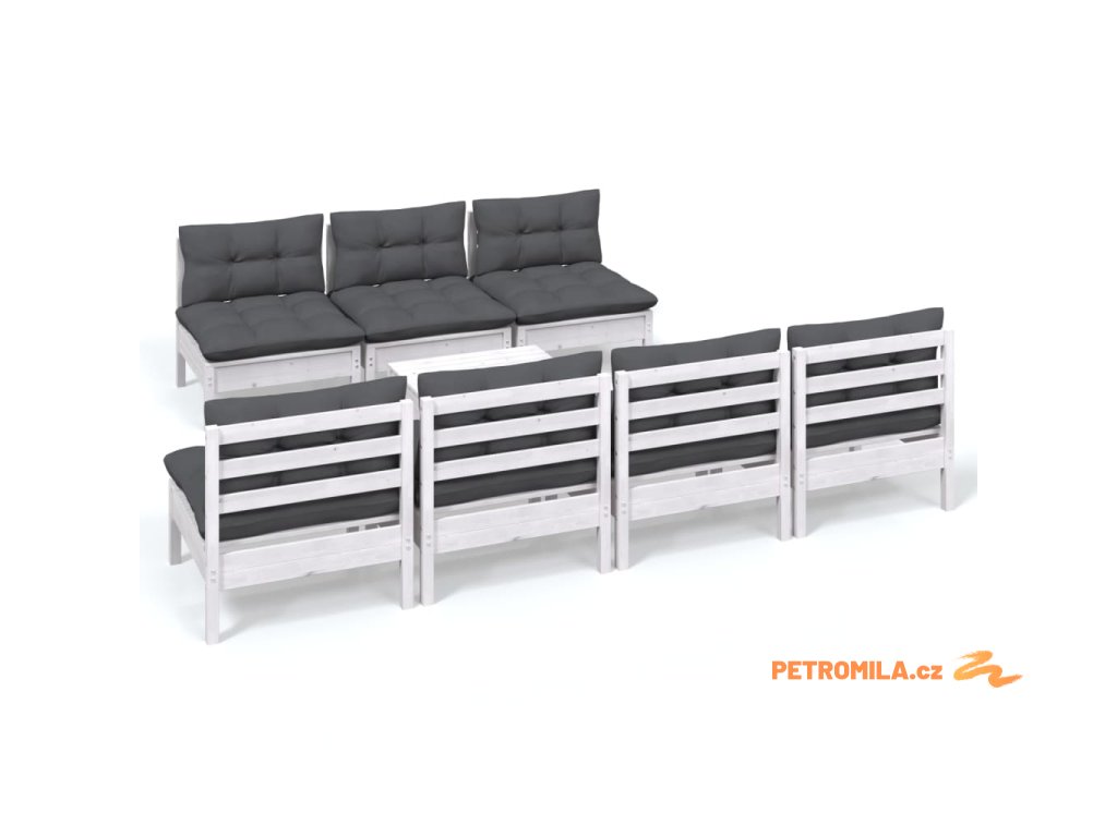 8dílná zahradní sedací souprava a antracitové podušky borovice